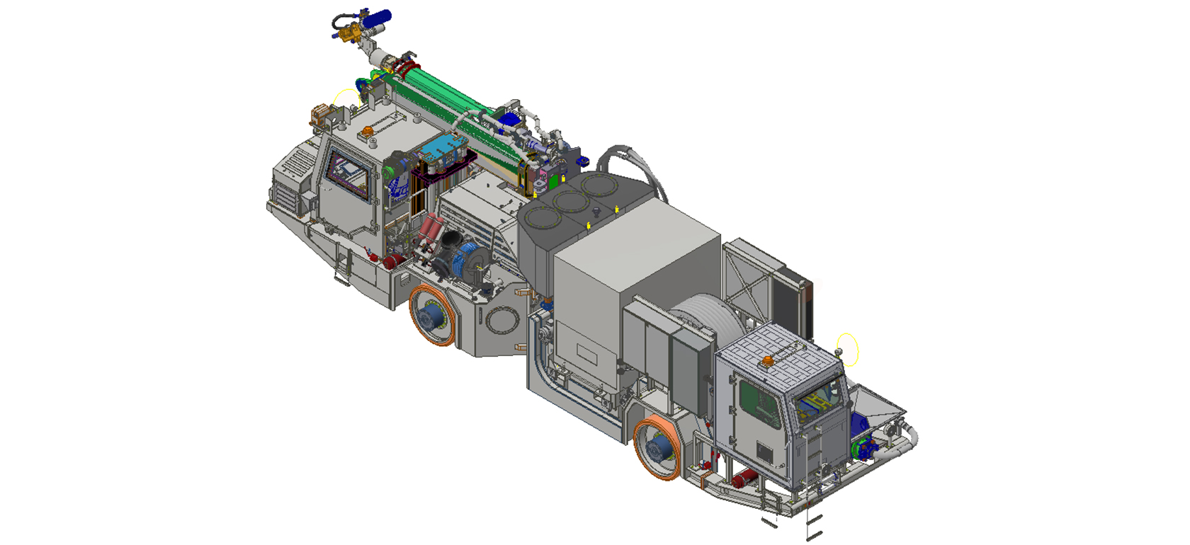 Das Spritzmanipulatorfahrzeug (SMF) wurde speziell für die Einlagerung radioaktiver Abfälle im ehemaligen Erzbergwerk Konrad entwickelt. Die Entwicklung erfolgte in Zusammenarbeit mit der Bundesgesellschaft für Endlagerung (BGE) und unterliegt strengen Richtlinien und Auflagen gemäß dem Atom- und Einlagerungsstättengesetz.