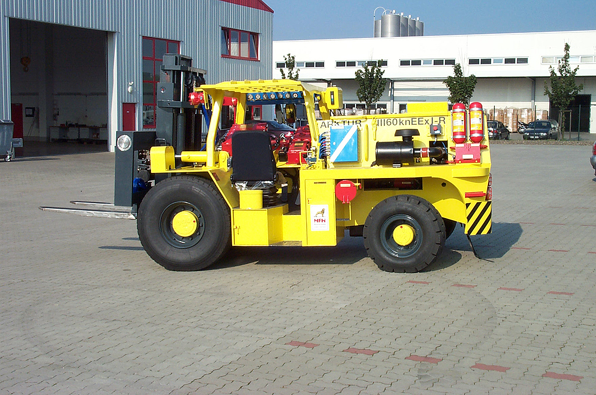Die allradgetriebene Schwerlaststapler in Front- oder Teleskopausführung wurden speziell für den untertägigen Bergbau entwickelt. Durch die robuste Fahrzeugkonstruktion, den Einsatz hochwertiger Komponenten, die kompakten Abmessungen, den Allradantrieb sowie der einfachen Bedienung und Wartung sind die Fahrzeuge seit Jahrzehnten erfolgreich und zuverlässig im Bergbau eingesetzt.