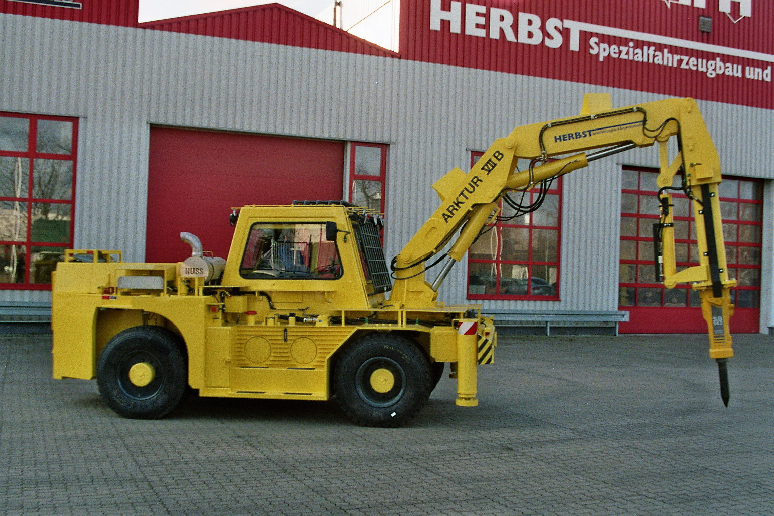 The PROXIMA CI is a powerful recovery vehicle with an additional hydraulic hammer, developed for the high demands of mining. Equipped with a triple-folding boom that can be swivelled through 200° via the slewing ring, the vehicle offers maximum flexibility in use. The hydraulic breaker can be raised and lowered by around 90° via a gearbox, enabling precise work even in difficult conditions.