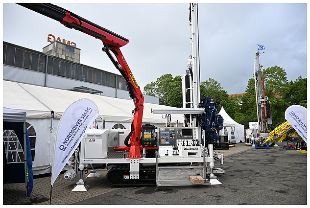 Zu Beginn erhielten die Gäste einen exklusiven Einblick in die Produktionshallen. Hier wurden Sonderfahrzeuge ausgestellt und präsentiert, darunter übertägige Bohrgeräte, untertägige Bohr- und Logistikfahrzeuge sowie speziell gefertigte Sonderfahrzeuge wie der Brammentransporter und der Spritzmanipulator. Die fachkundigen Führungen und die umfangreichen Informationen stießen bei den weit angereisten Gästen auf große Begeisterung.
