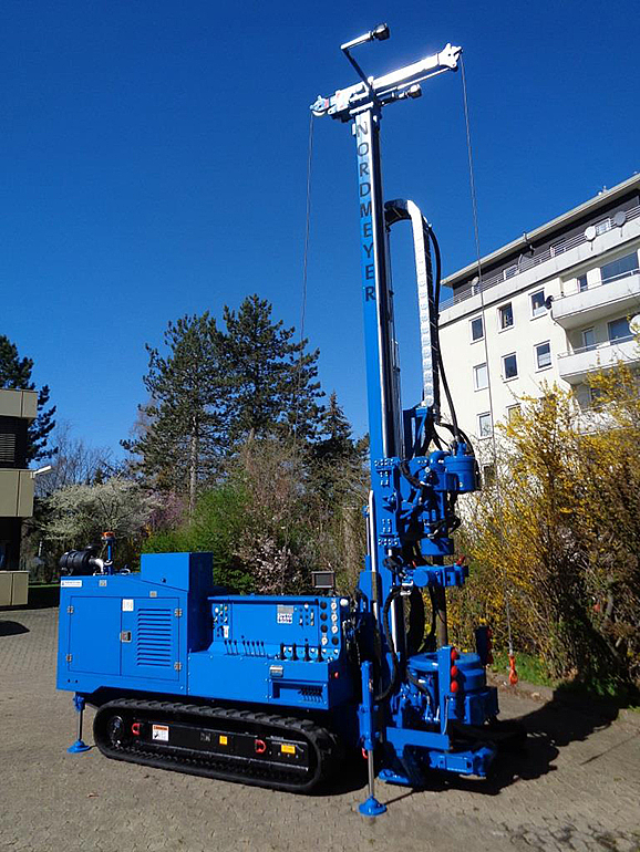 Unser kompaktes Bohrgerät steht für maximale Effizienz auf engem Raum und bietet dabei die gewohnte Nordmeyer-Qualität – robust, langlebig und praxisorientiert. Mit einem Gesamtgewicht von nur 8,8 Tonnen und einer Rahmenbreite von lediglich 1.700 mm eignet sich diese Maschine ideal für beengte Baustellenverhältnisse, etwa im innerstädtischen Bereich oder bei schwer zugänglichen Grundstücken.